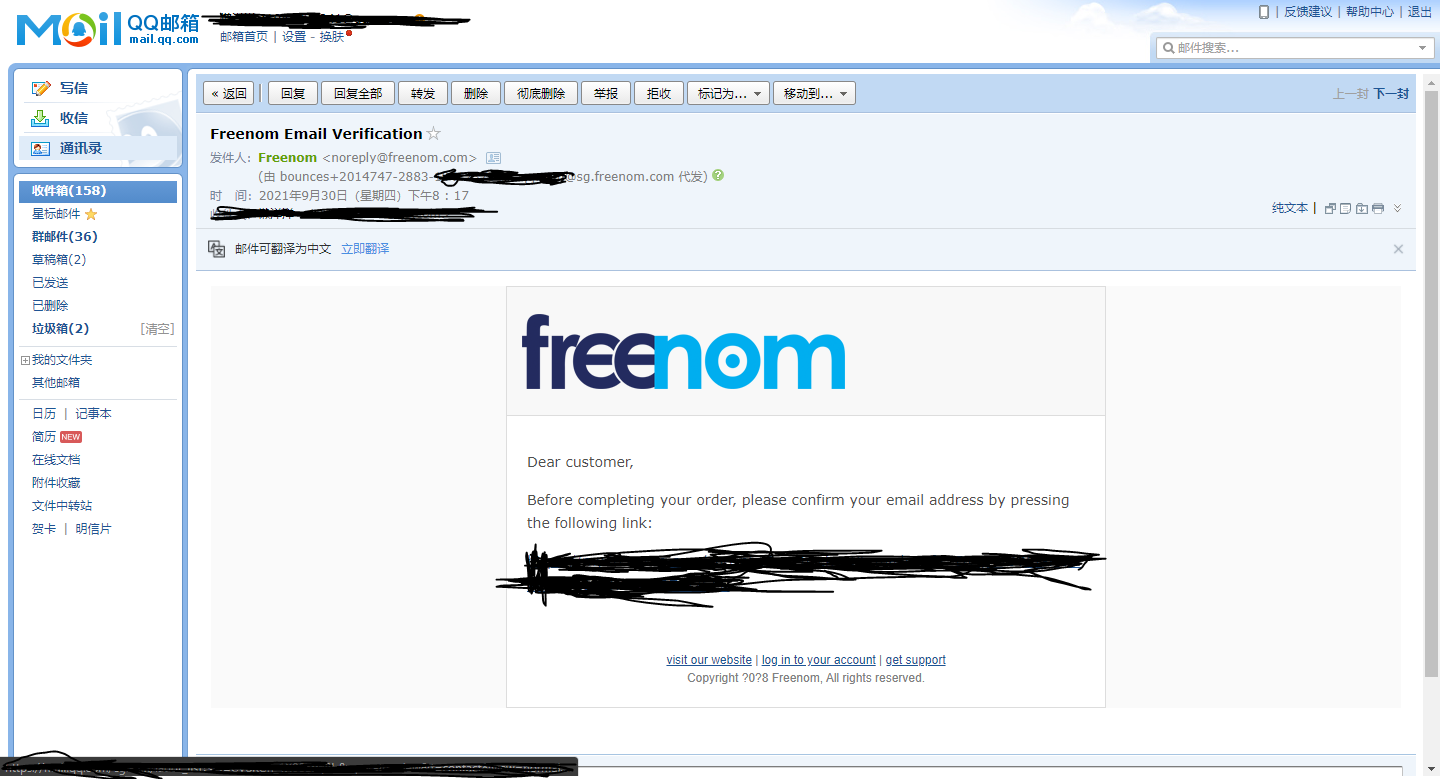 Freenom 就会发一封邮件到你的邮箱里面