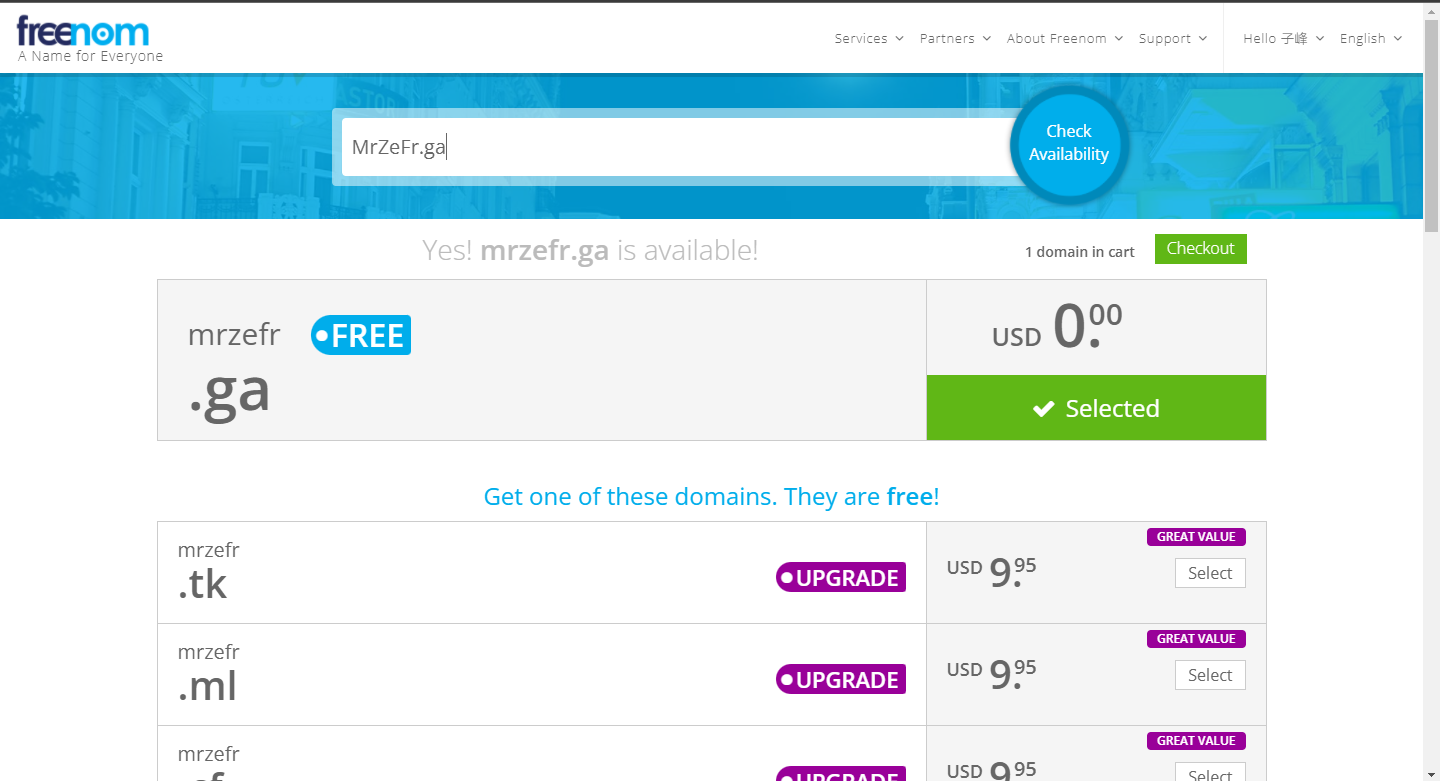 之后输入您需要购买的域名比如: MrZeFr.ml 和 MrZeFr.tk
