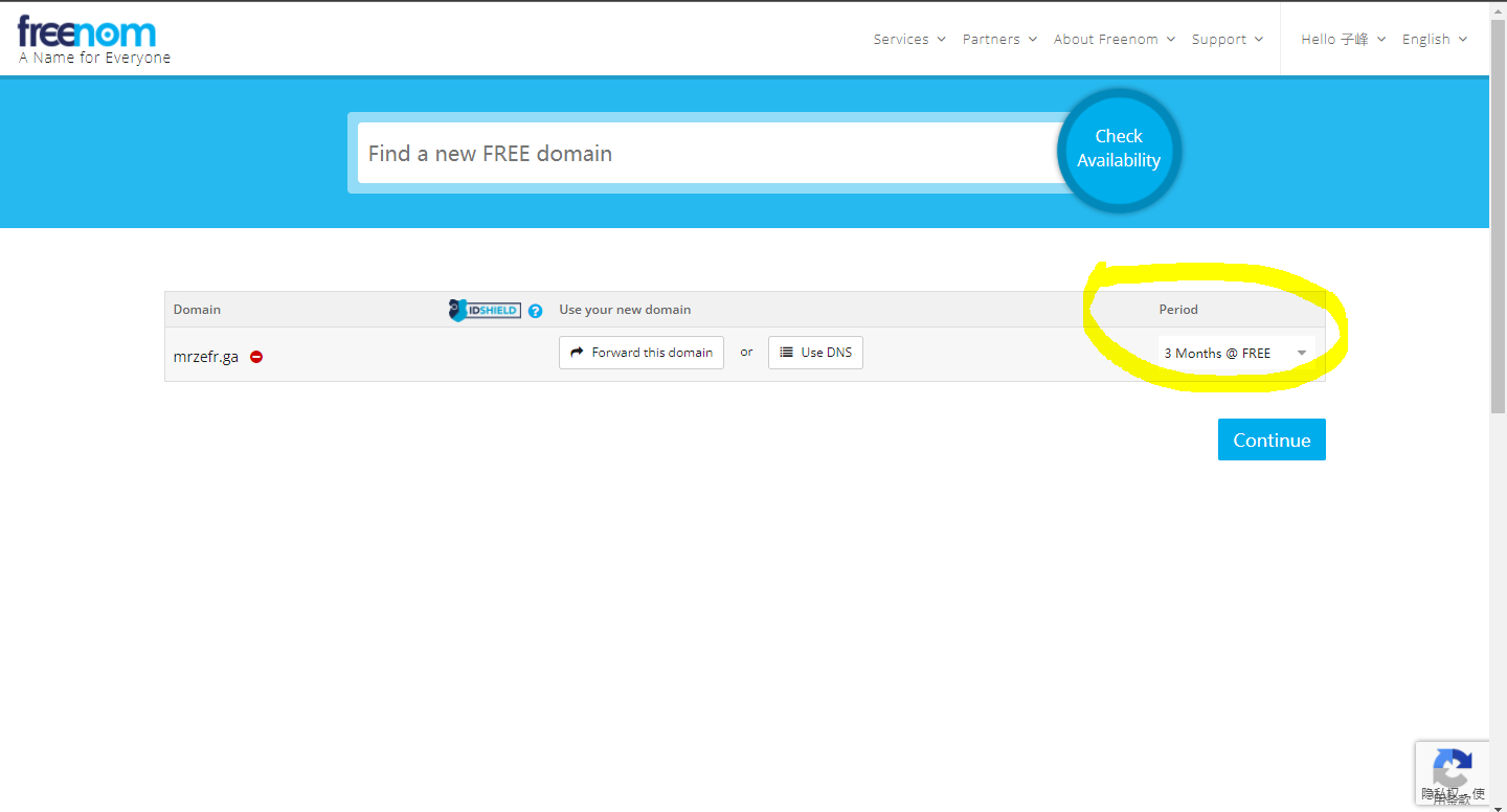 注意: 您输入您需要的域名之后一定要加上后缀比如: .ml 和.tk
