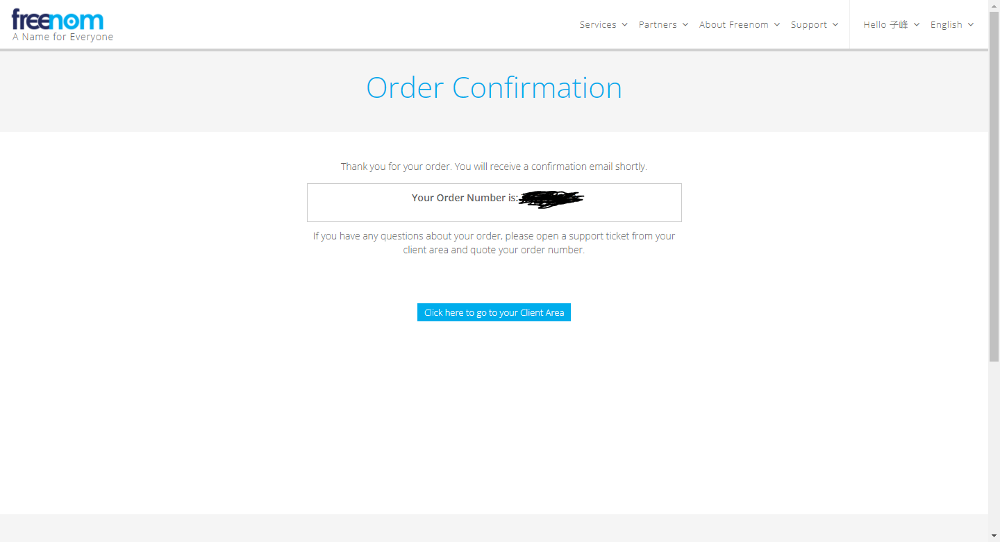 买完之后 Freenom 会给你订单号